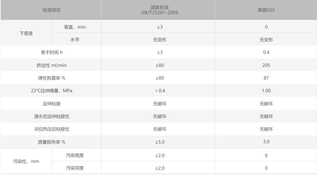 中性固化 ,粘接性、耐候性、抗老化優(yōu)異,對各類石材、混凝土、塑料等無腐蝕性。
